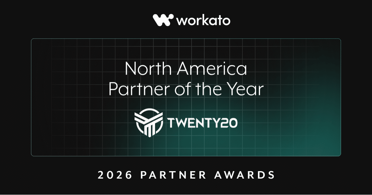 Twenty20 Systems has been named North America Partner of the Year at Workato's SKO 2026, Denver. For a team that pours everything into every implementation, every client challenge, and every automation we build, this one means a lot to us.